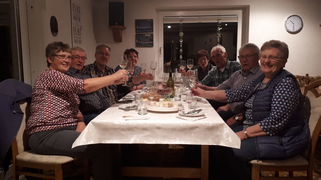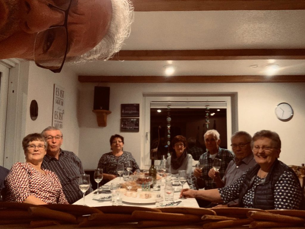 Am 15. November fand in unserer kleinen Weinmacher-Runde mit unseren Partnerinnen das Weinfest statt. Hier wurde der junge 2019er das erste mal verkostet. Das Ergebnis konnte sich sehen lassen. Von trockenem Rotwein über Rosè bis fruchtigem Weißwein war eine reichhaltige Bandbreite zu genießen. Außerdem hatten unsere Frauen für das nötige Beiwerk in Form von Käseplatte und diversen leckeren Backwaren gesorgt. Alles in Allem eine gelungene Aktion.